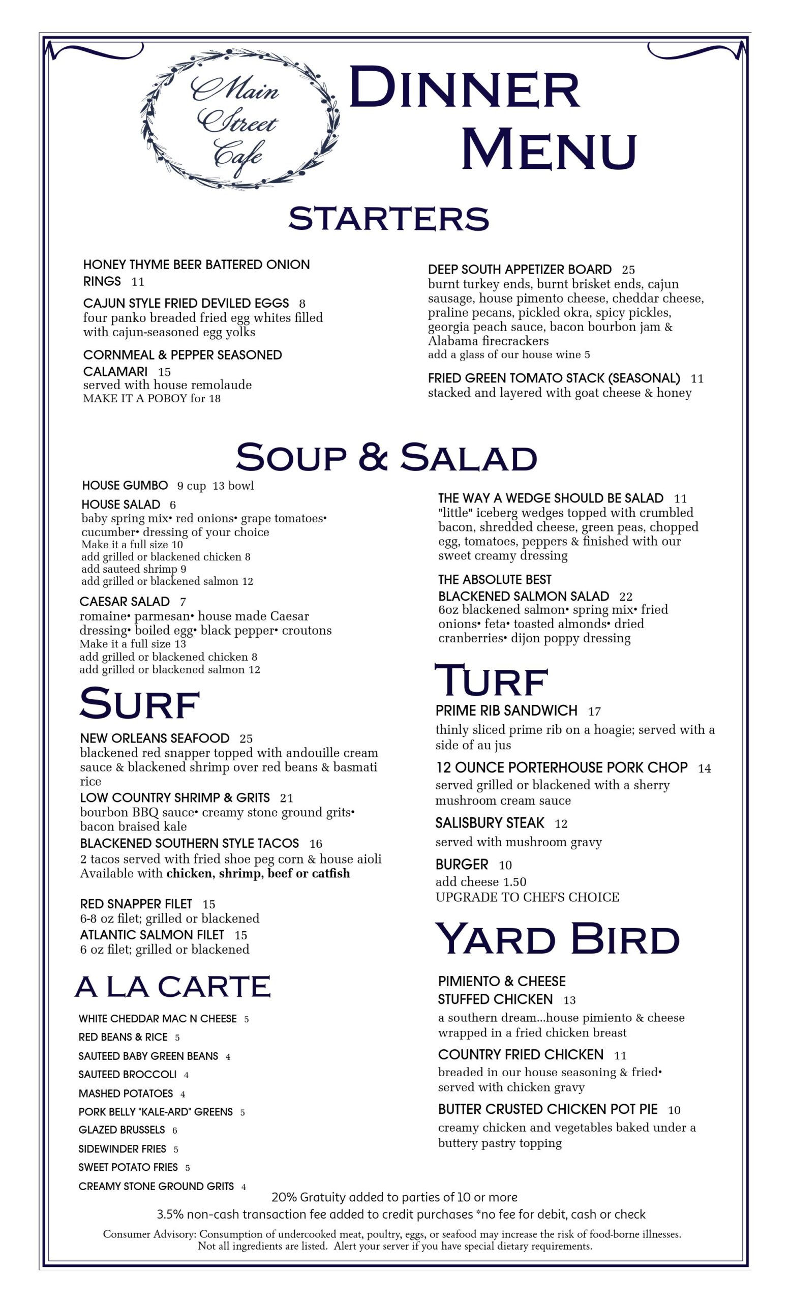Dinner Menu